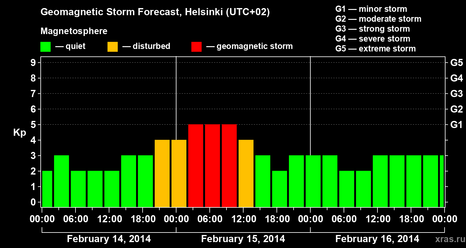 Geomagnetic storm forecast in Helsinki for Feb 14, 2014