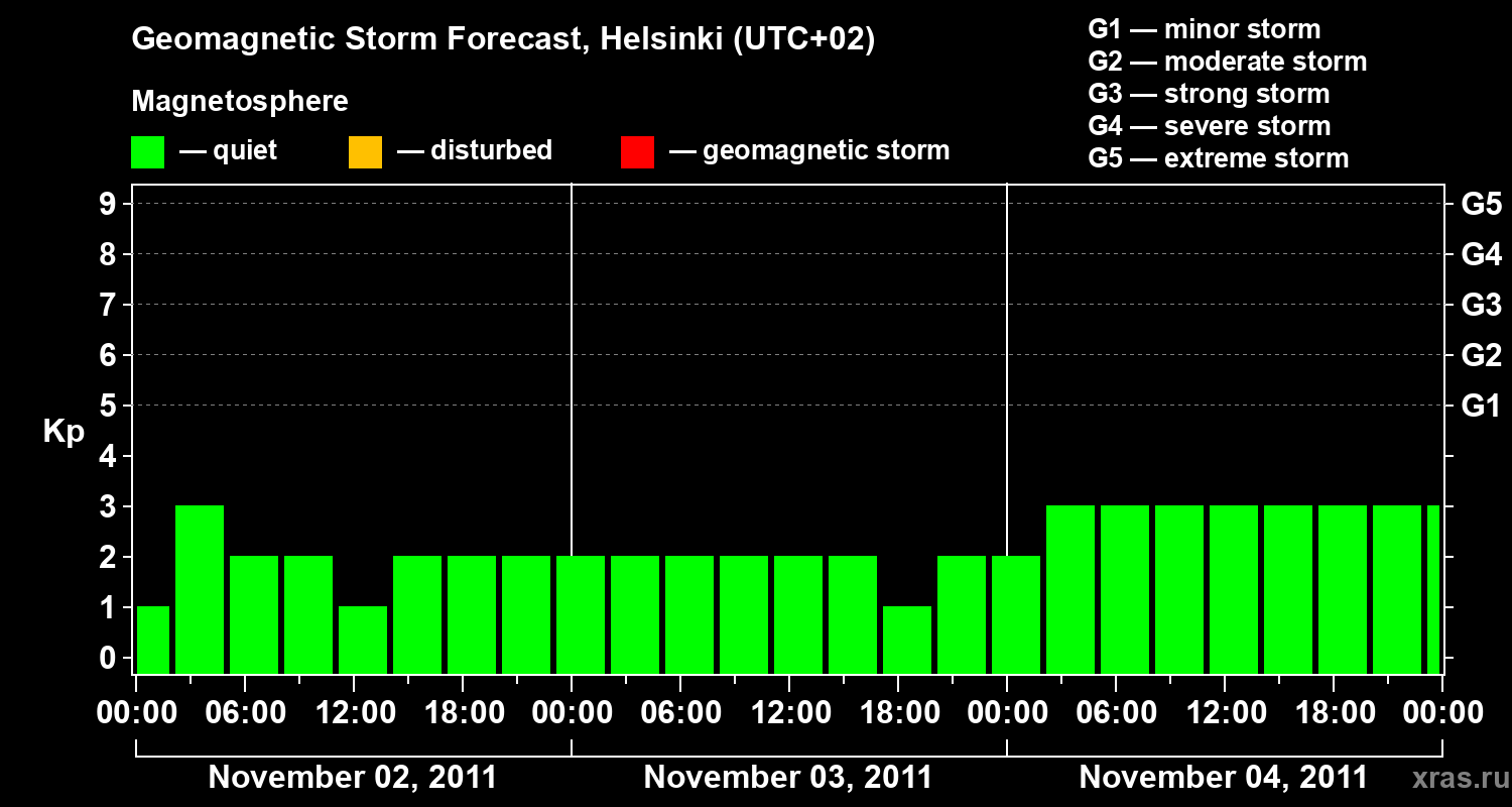 Geomagnetic storm forecast in Helsinki for Nov 02, 2011