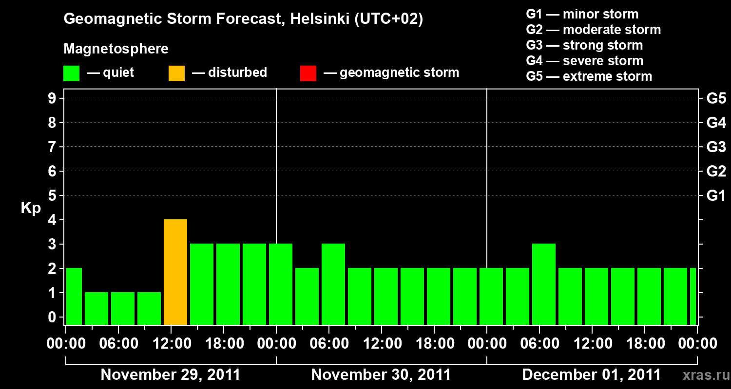 Geomagnetic storm forecast in Helsinki for Nov 29, 2011