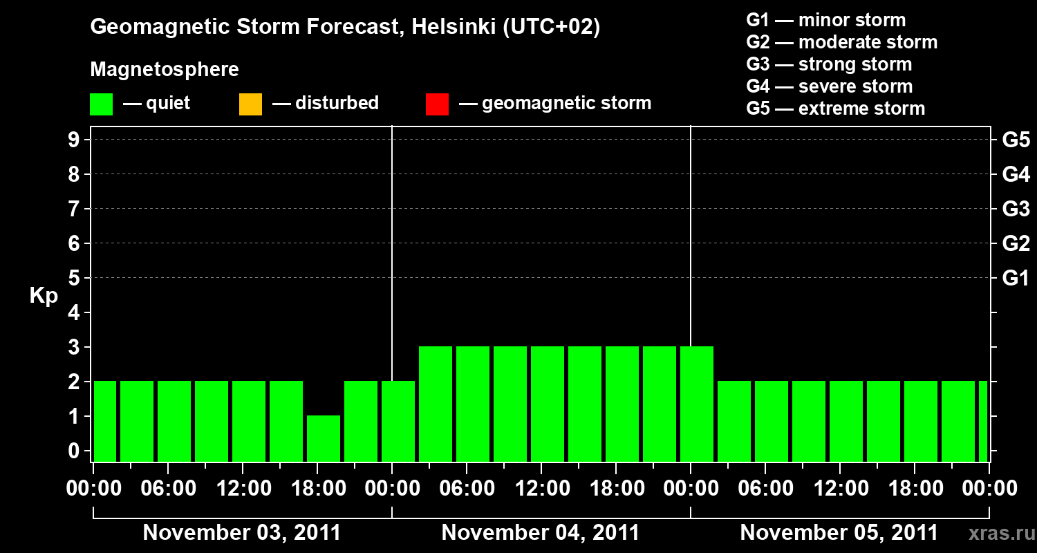 Geomagnetic storm forecast in Helsinki for Nov 03, 2011