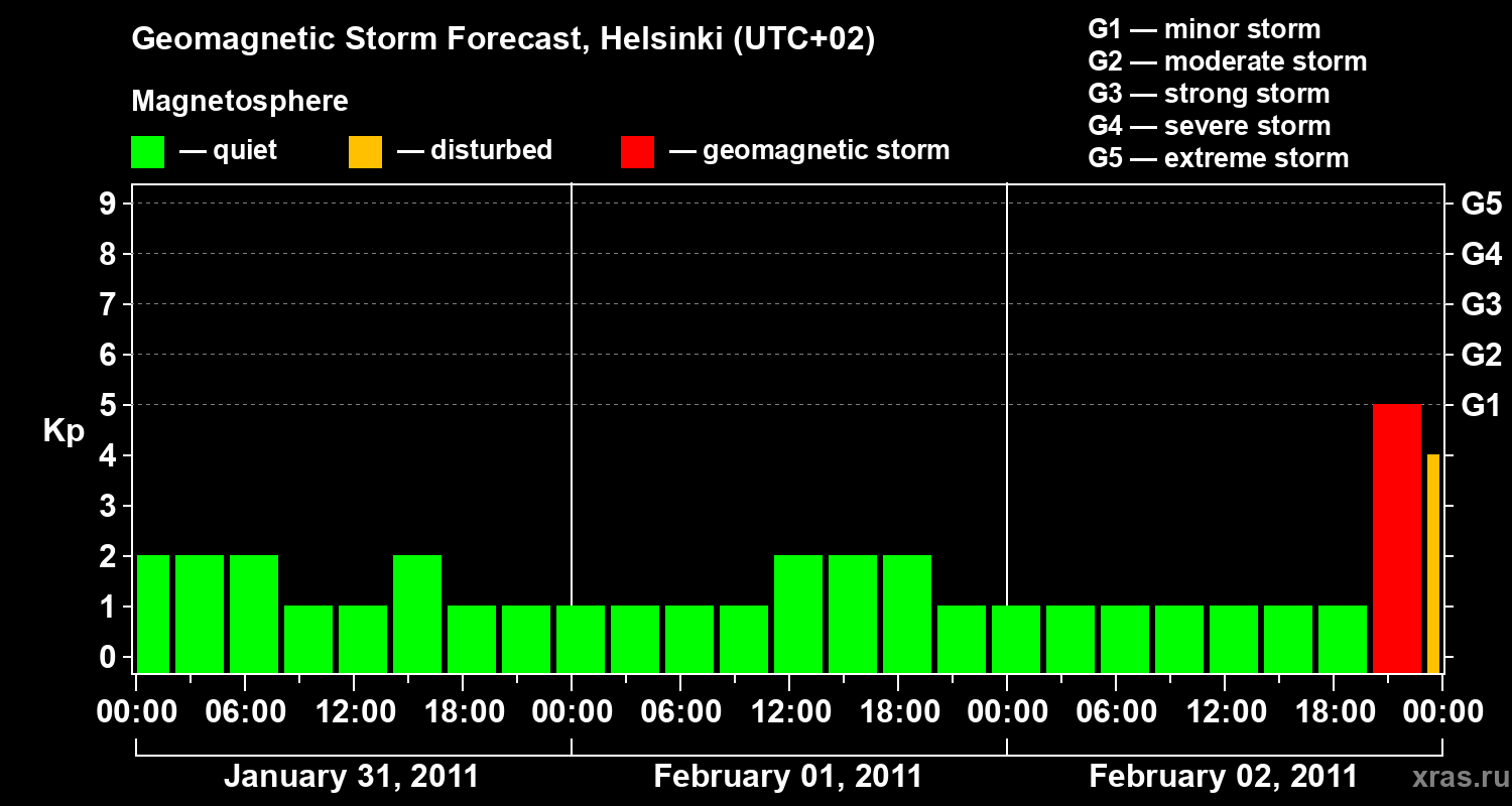 Geomagnetic storm forecast in Helsinki for Jan 31, 2011