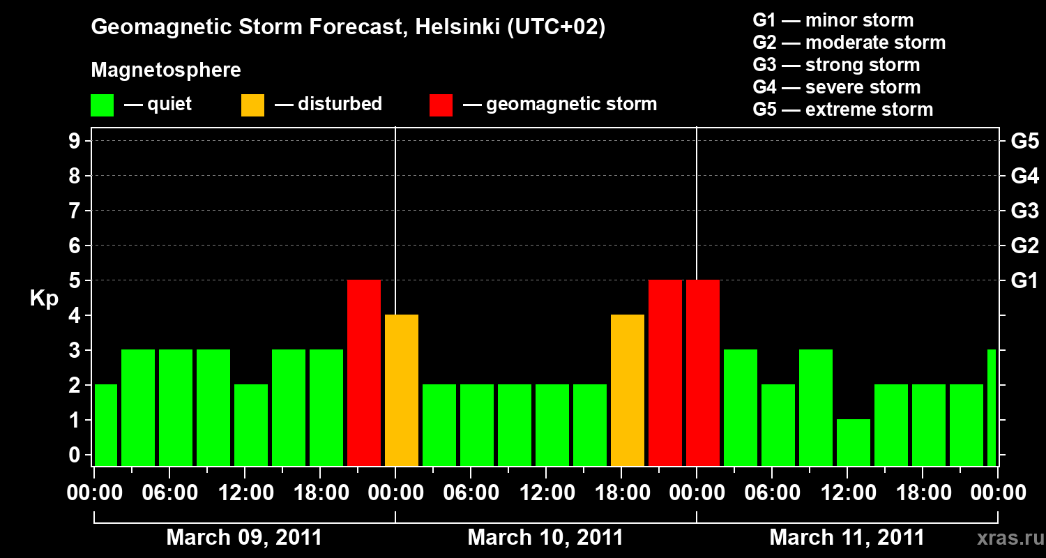 Geomagnetic storm forecast in Helsinki for Mar 09, 2011