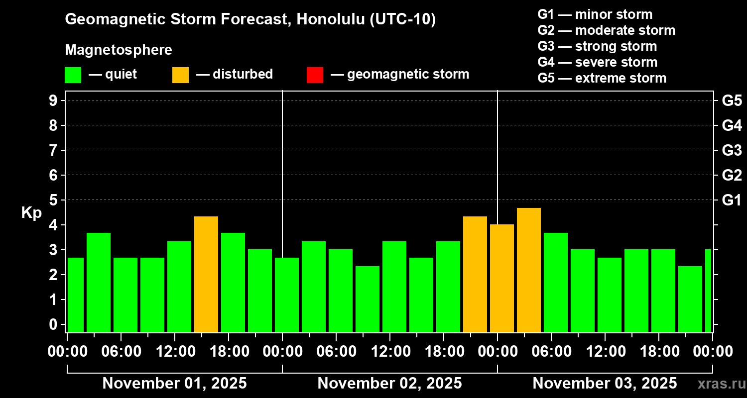Geomagnetic storm forecast in Honolulu for Nov 01, 2025