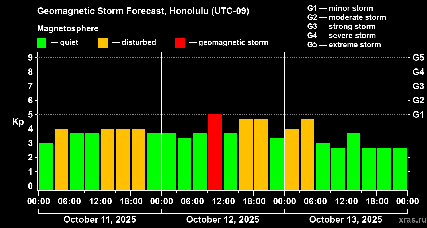 Geomagnetic storm forecast in Honolulu for Oct 11, 2025