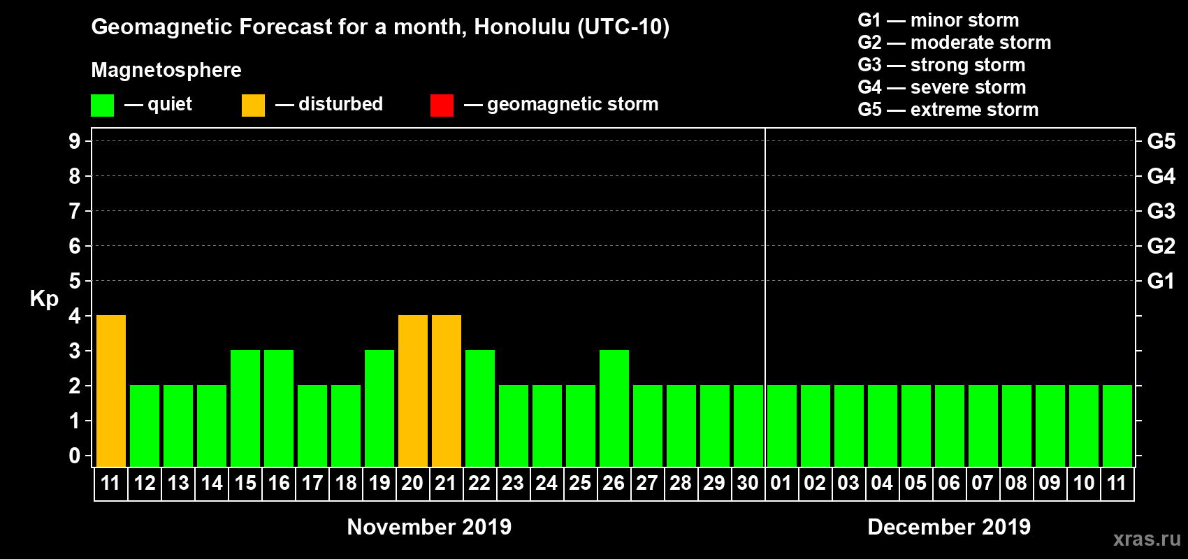 Geomagnetic storm forecast in Honolulu for Nov 11, 2019