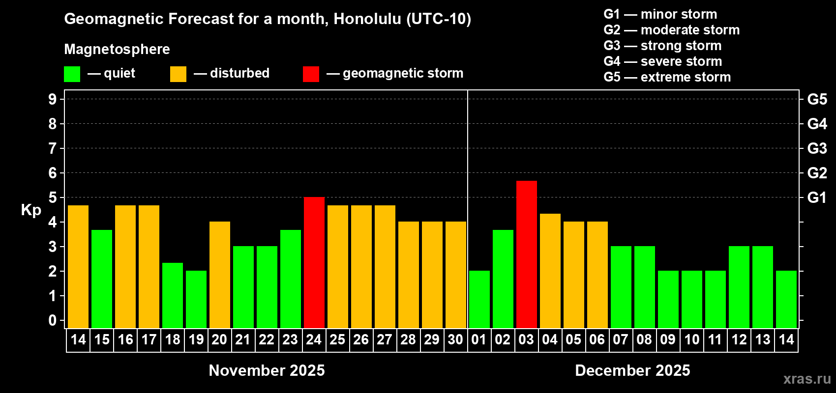 Geomagnetic storm forecast in Honolulu for Nov 14, 2025