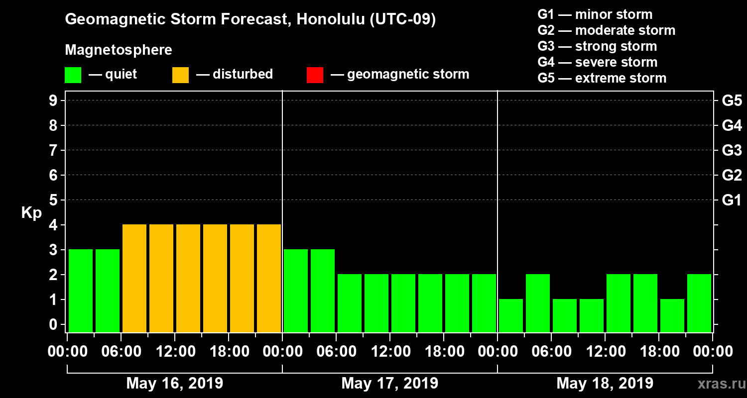Geomagnetic storm forecast in Honolulu for May 16, 2019