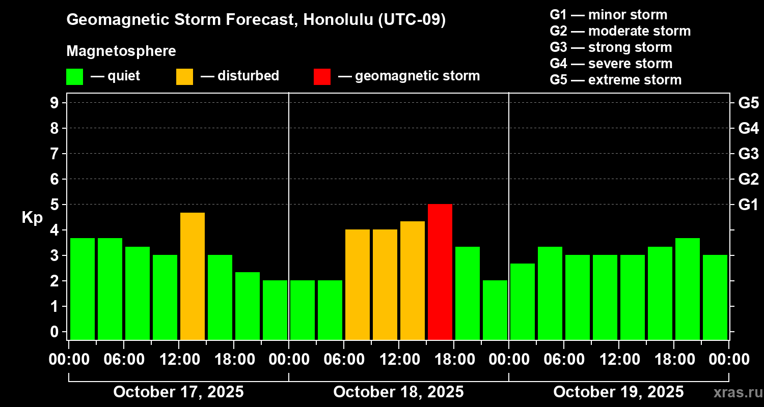 Geomagnetic storm forecast in Honolulu for Oct 17, 2025