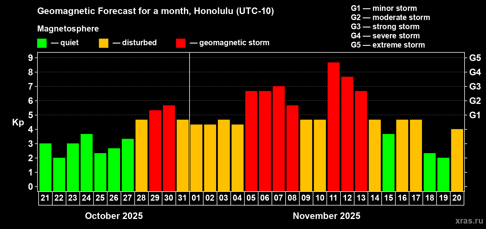 Geomagnetic storm forecast in Honolulu for Oct 21, 2025