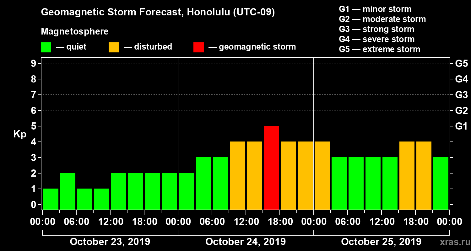 Geomagnetic storm forecast in Honolulu for Oct 23, 2019