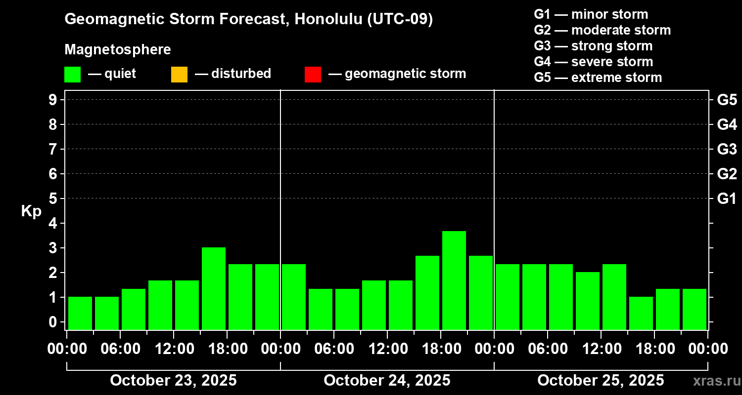 Geomagnetic storm forecast in Honolulu for Oct 23, 2025