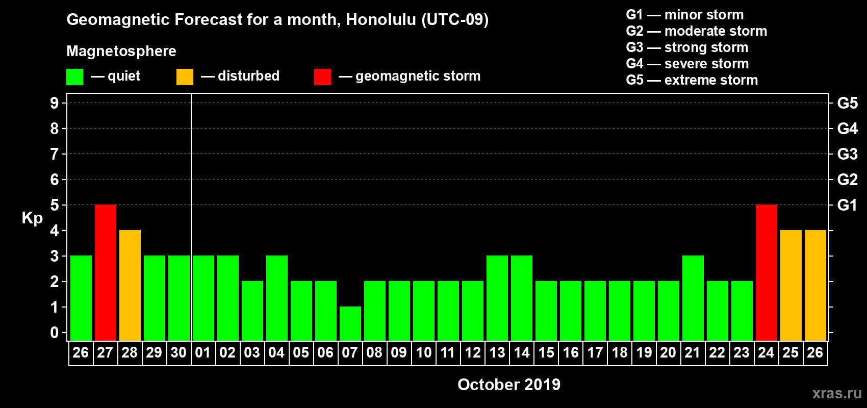 Geomagnetic storm forecast in Honolulu for Sep 26, 2019