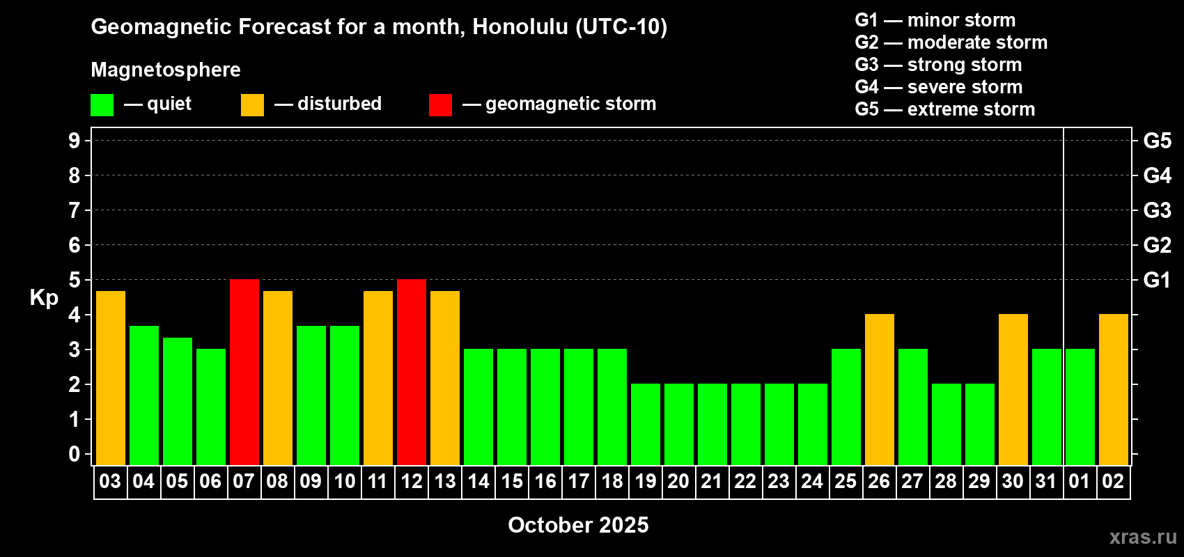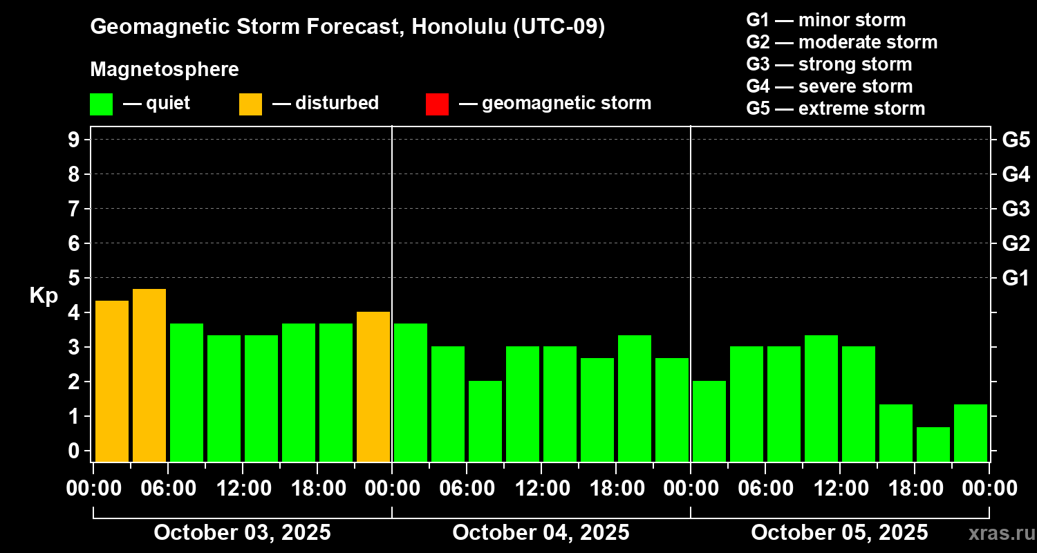 Geomagnetic storm forecast in Honolulu for Oct 03, 2025