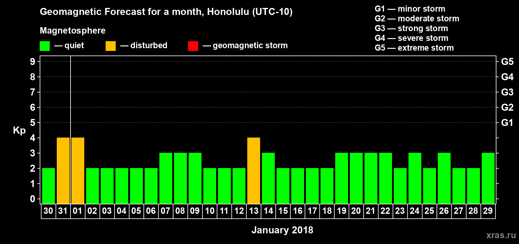 Geomagnetic storm forecast in Honolulu for Dec 30, 2017