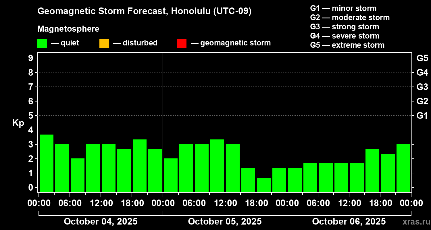Geomagnetic storm forecast in Honolulu for Oct 04, 2025
