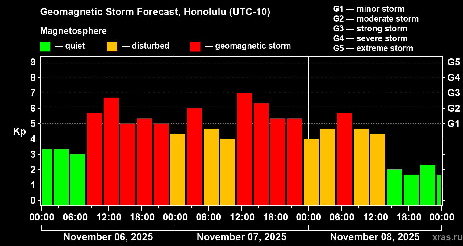 Geomagnetic storm forecast in Honolulu for Nov 06, 2025