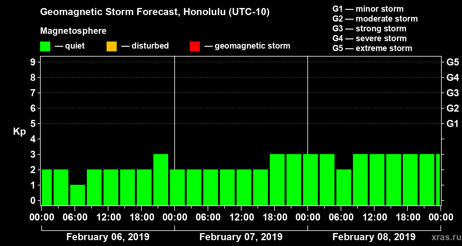 Geomagnetic storm forecast in Honolulu for Feb 06, 2019
