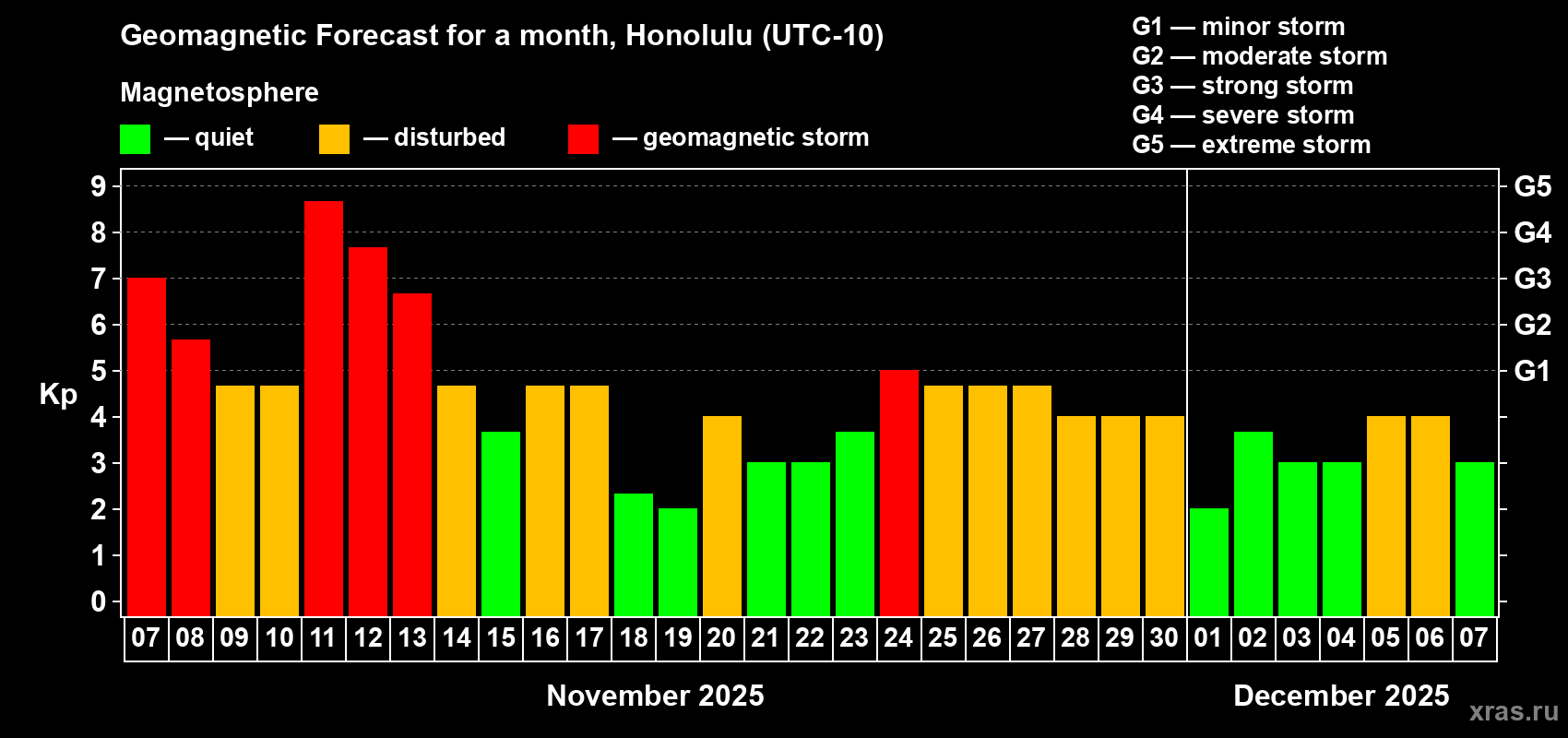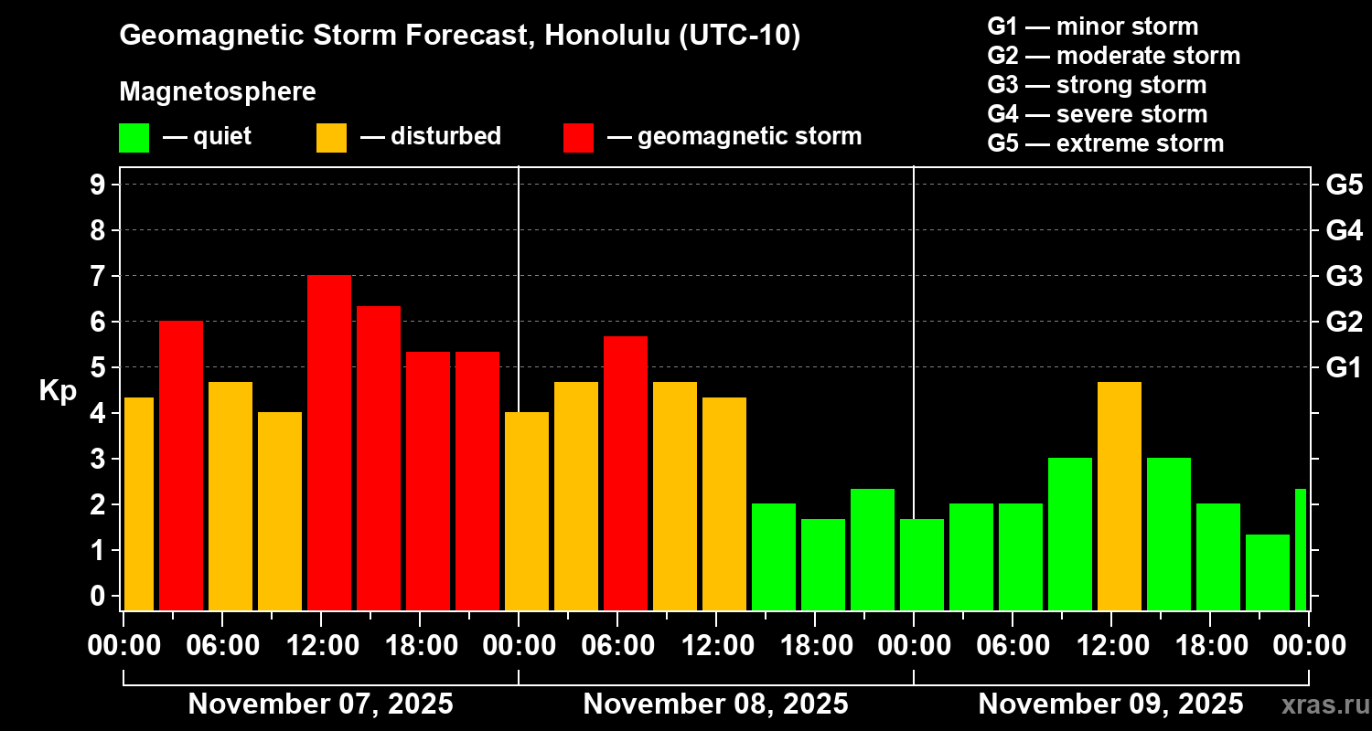 Geomagnetic storm forecast in Honolulu for Nov 07, 2025