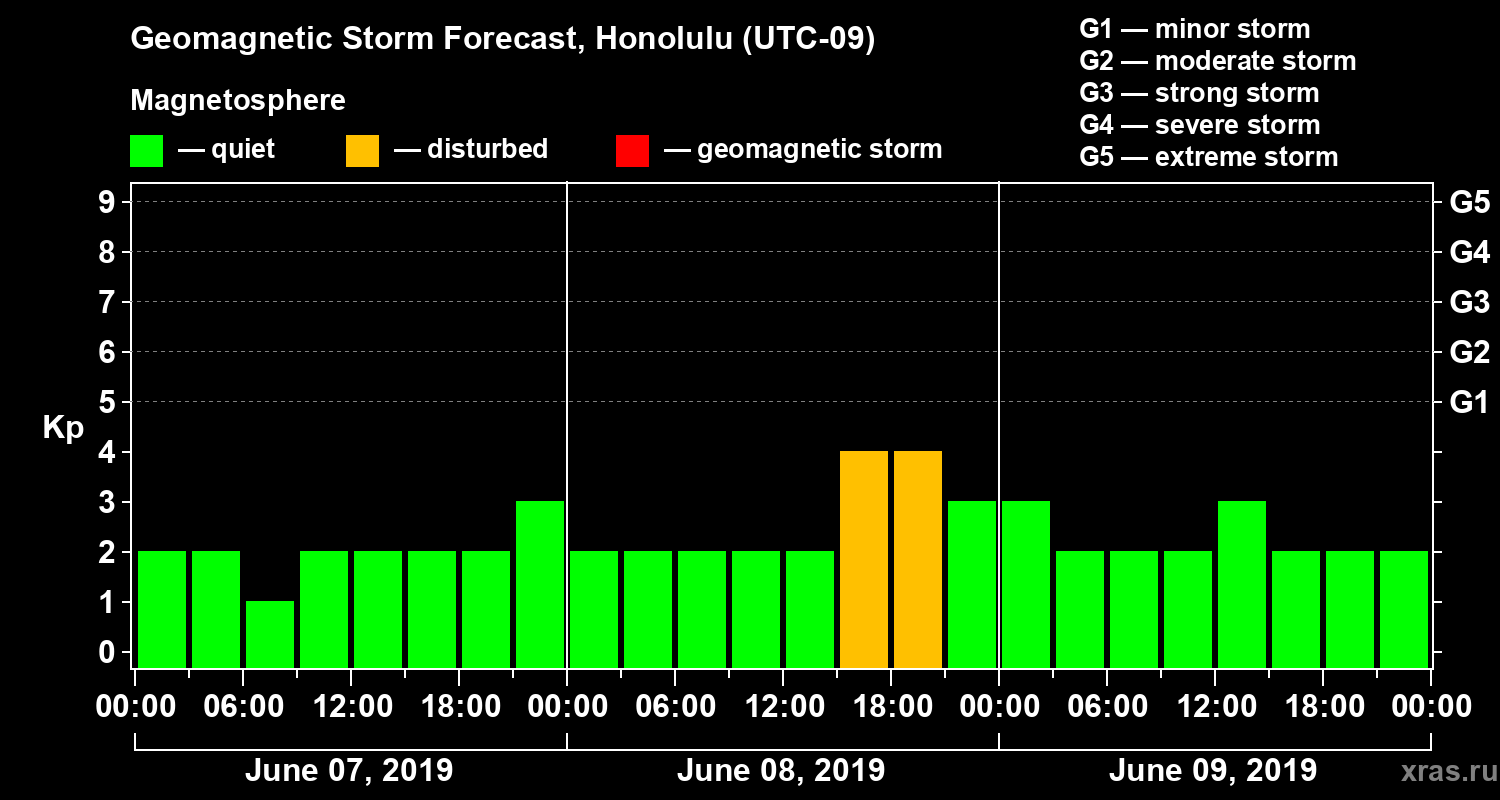 Geomagnetic storm forecast in Honolulu for Jun 07, 2019