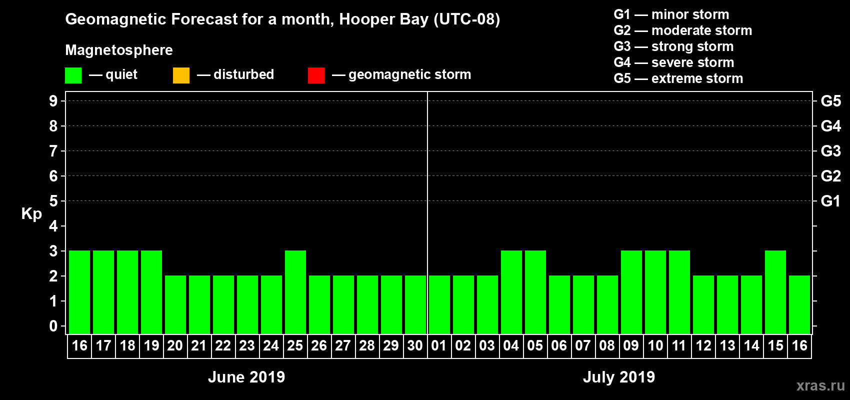 Geomagnetic storm forecast in Hooper Bay for Jun 16, 2019