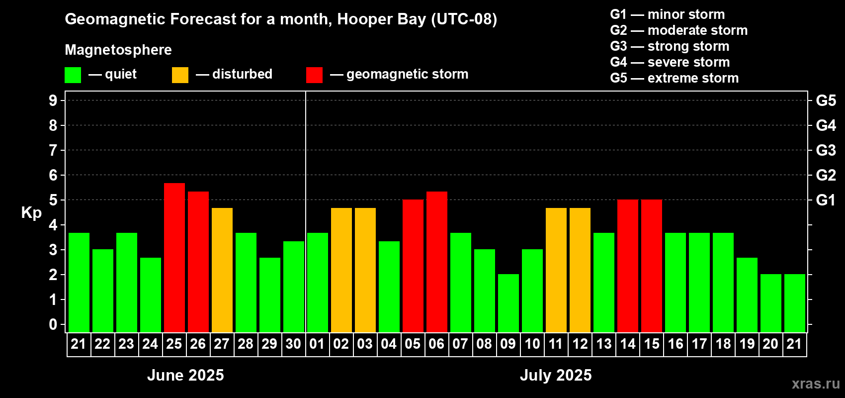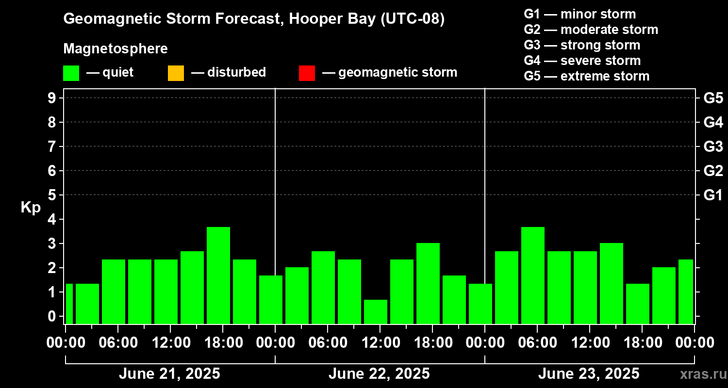 Geomagnetic storm forecast in Hooper Bay for Jun 21, 2025