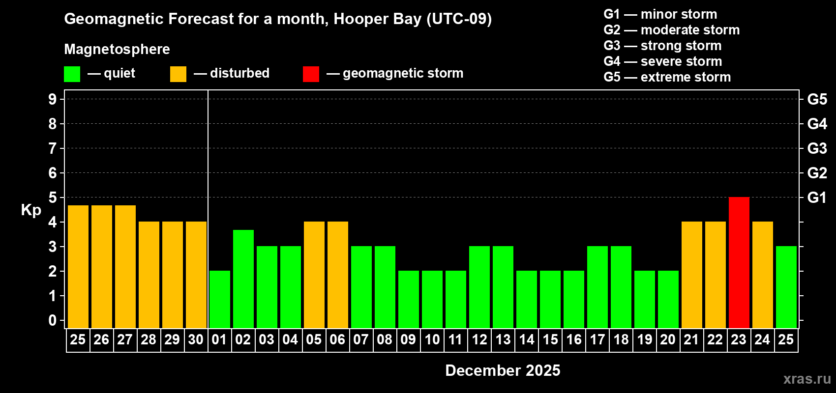 Geomagnetic storm forecast in Hooper Bay for Nov 25, 2025