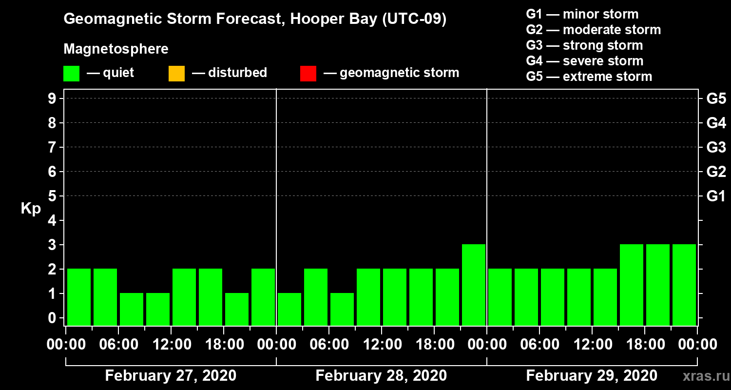 Geomagnetic storm forecast in Hooper Bay for Feb 27, 2020