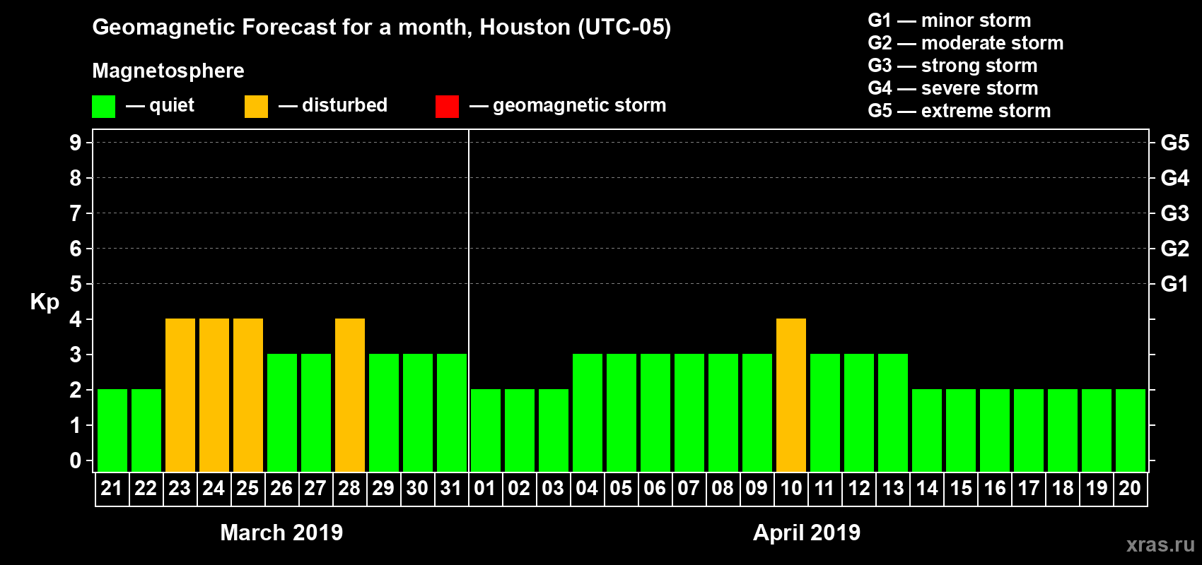 Geomagnetic activity forecast in Houston — Mar 21, 2019