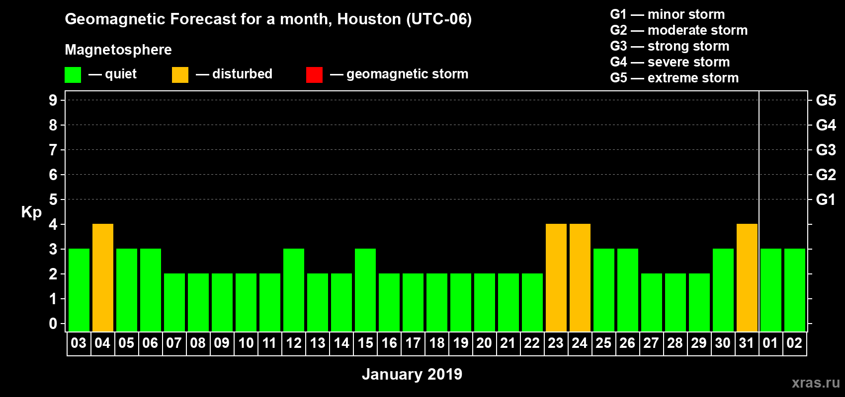 Geomagnetic storm forecast in Houston for Jan 03, 2019