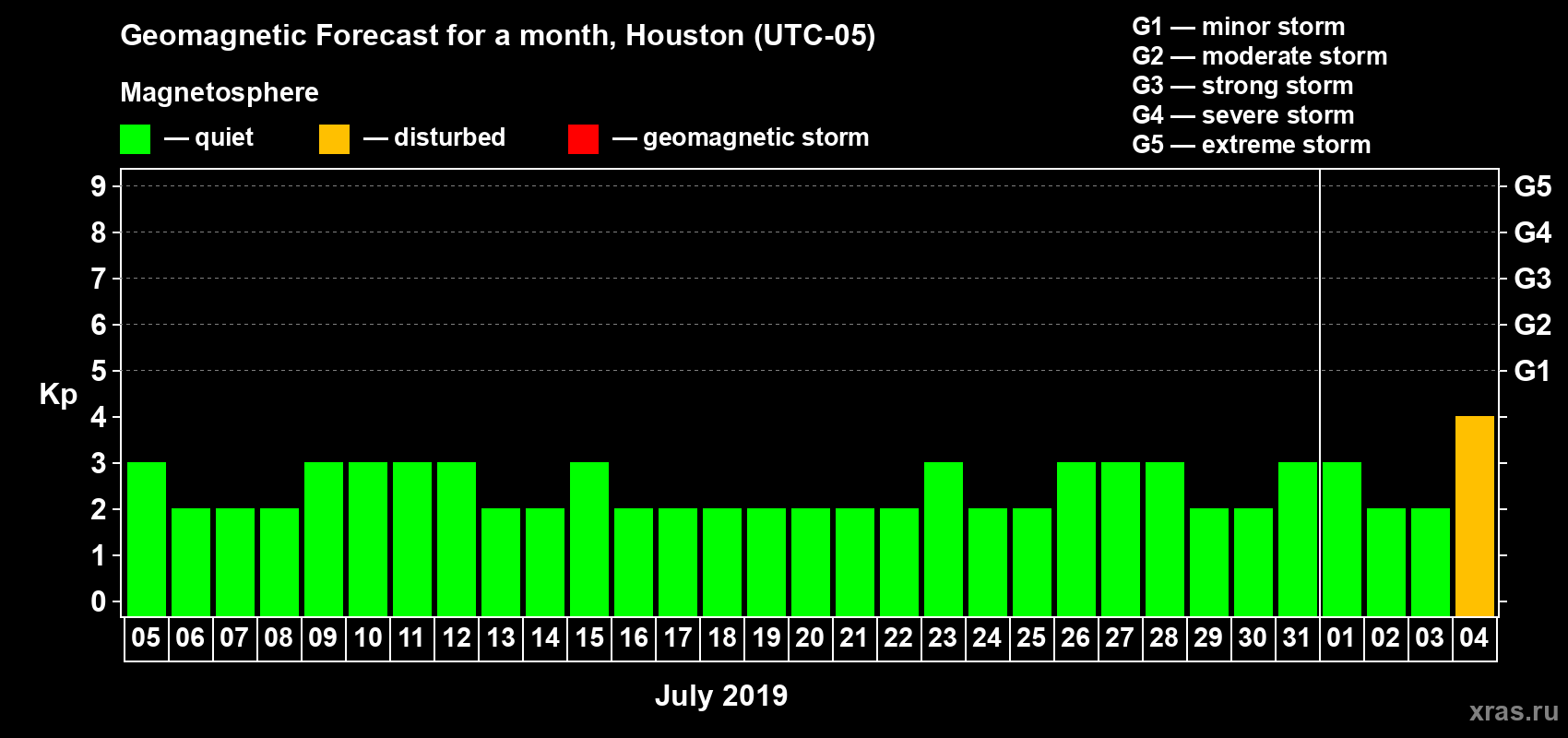 Geomagnetic storm forecast in Houston for Jul 05, 2019