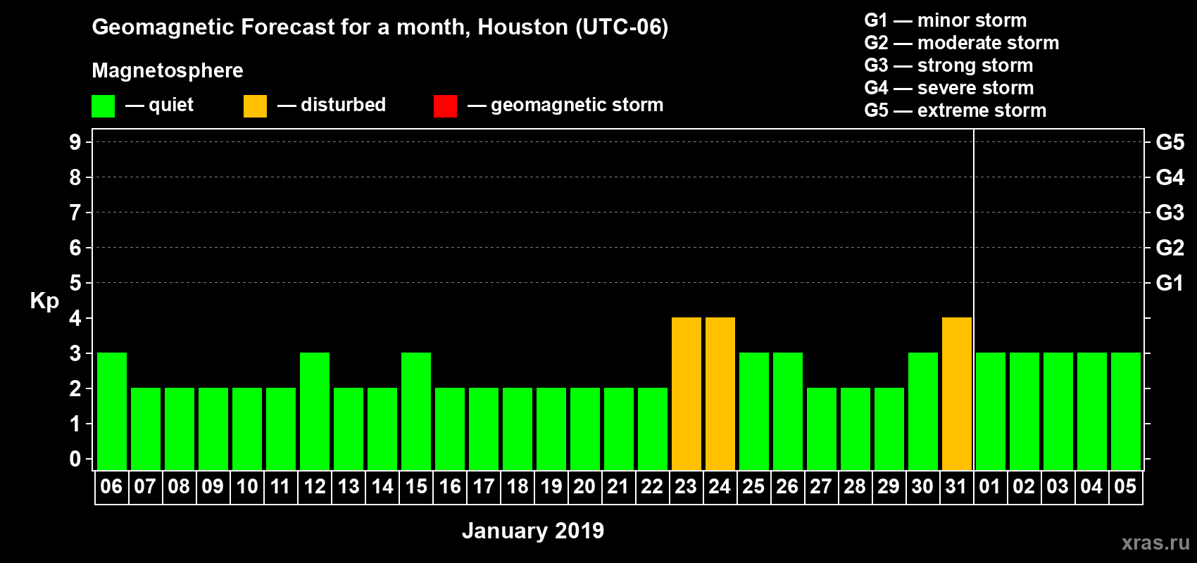 Geomagnetic storm forecast in Houston for Jan 06, 2019