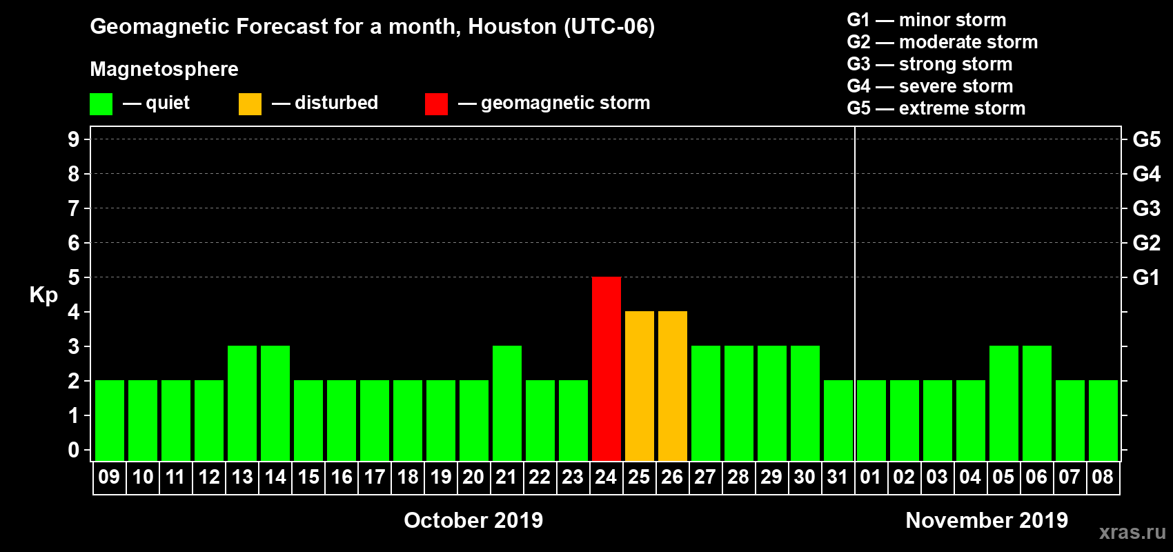 Geomagnetic storm forecast in Houston for Oct 09, 2019