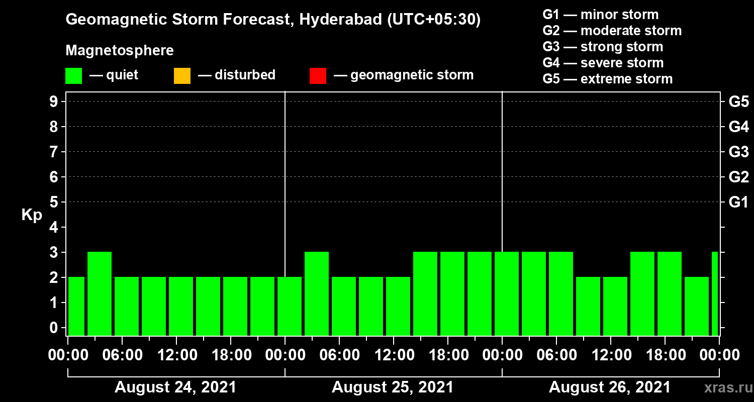 Geomagnetic activity forecast in Hyderabad — Aug 24, 2021