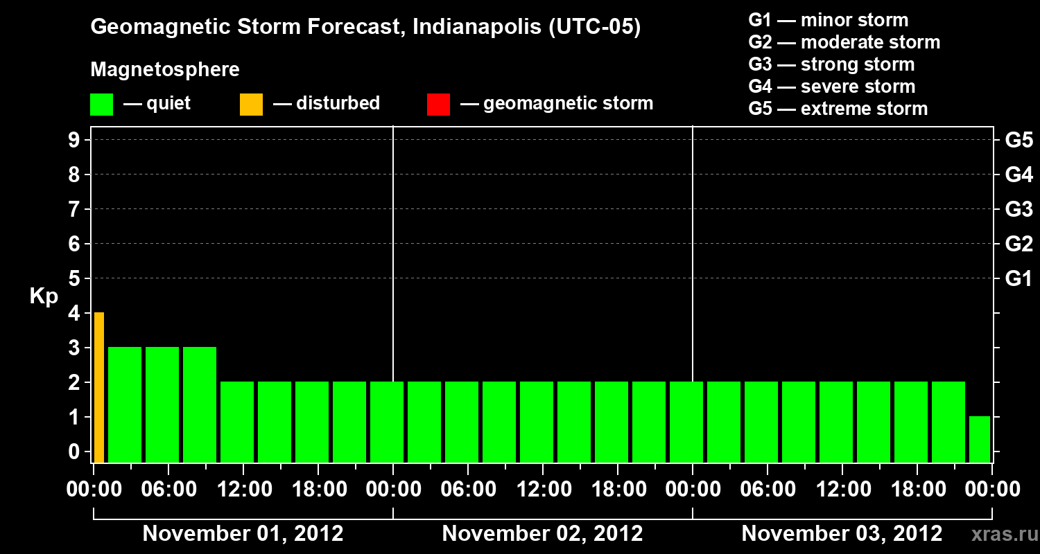 Geomagnetic storm forecast in Indianapolis for Nov 01, 2012