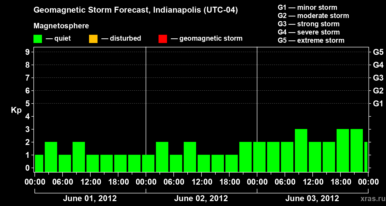 Geomagnetic storm forecast in Indianapolis for Jun 01, 2012