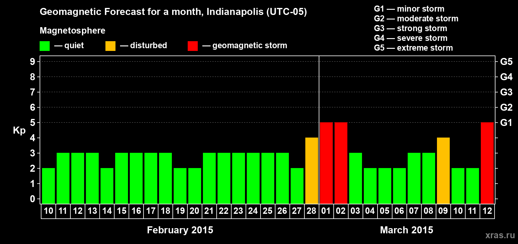 Geomagnetic storm forecast in Indianapolis for Feb 10, 2015
