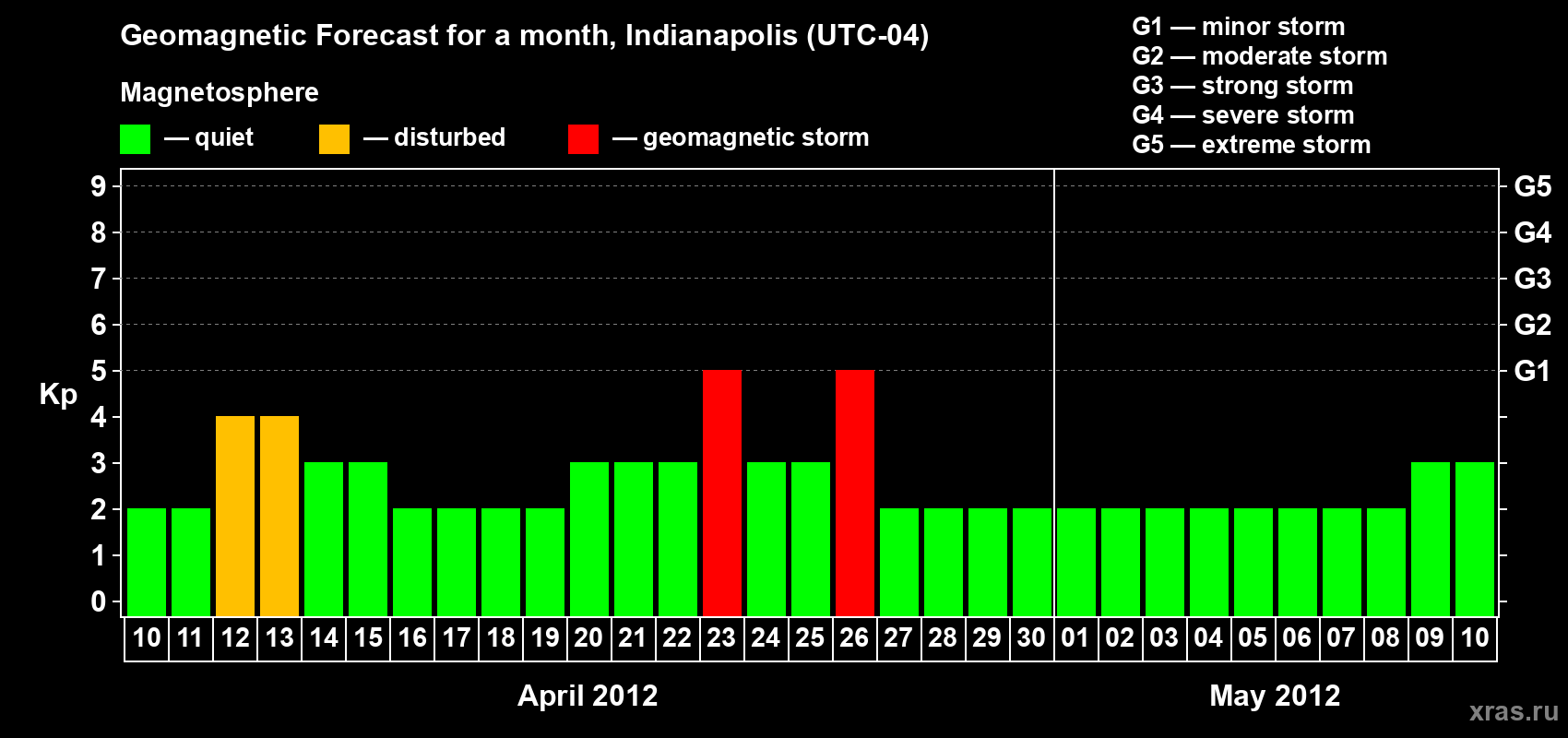 Geomagnetic storm forecast in Indianapolis for Apr 10, 2012
