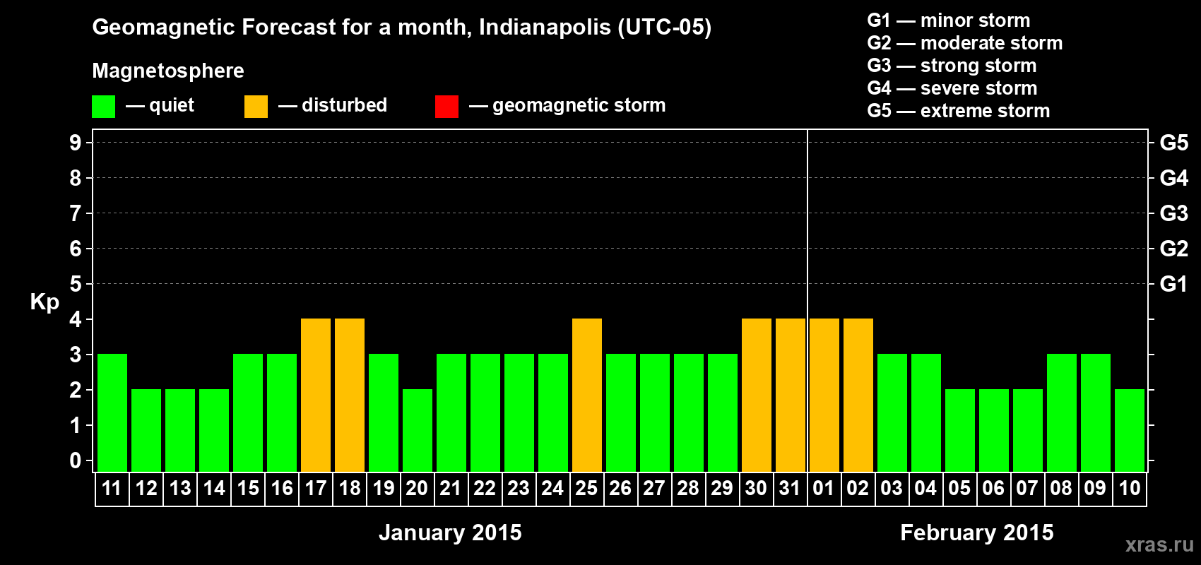 Geomagnetic storm forecast in Indianapolis for Jan 11, 2015