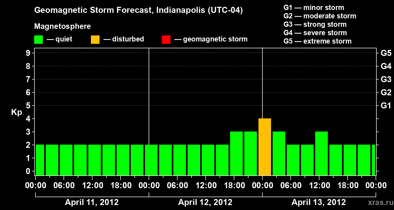 Geomagnetic storm forecast in Indianapolis for Apr 11, 2012