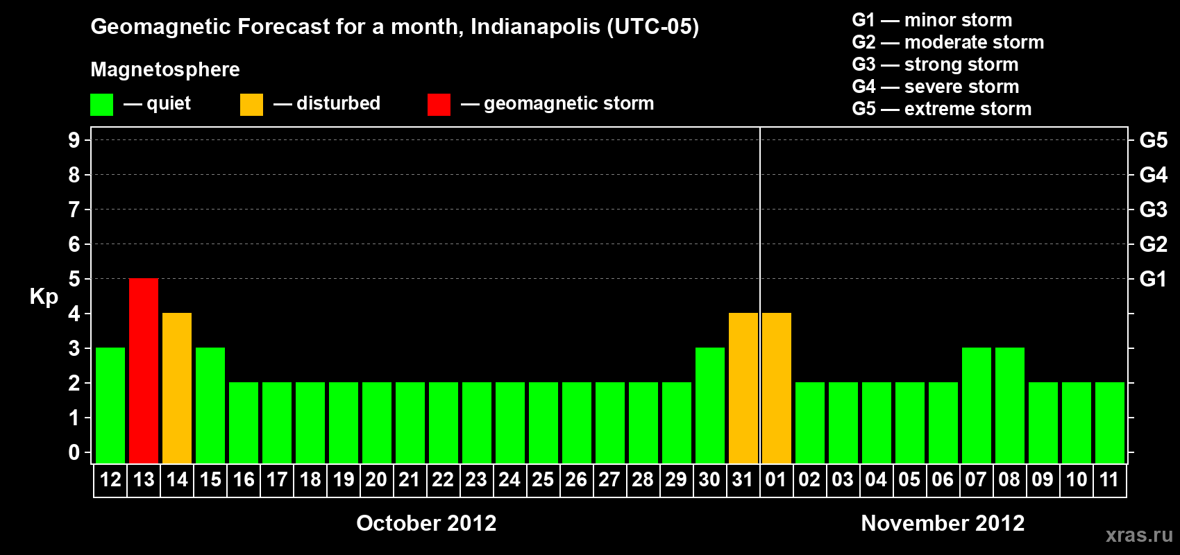 Geomagnetic storm forecast in Indianapolis for Oct 12, 2012