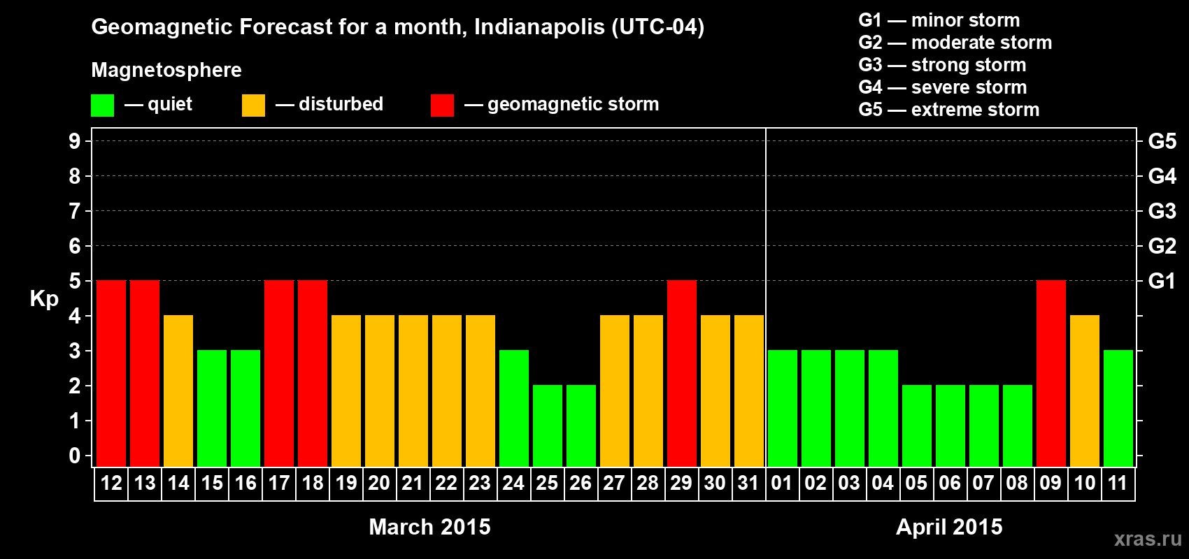 Geomagnetic activity forecast in Indianapolis — Mar 12, 2015