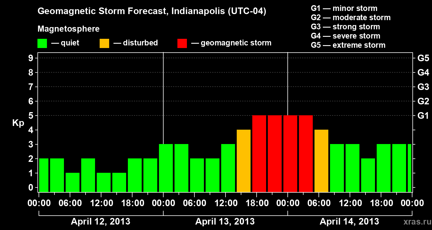 Geomagnetic storm forecast in Indianapolis for Apr 12, 2013