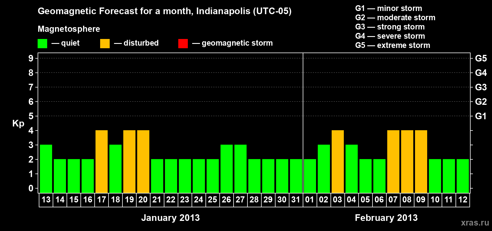 Geomagnetic storm forecast in Indianapolis for Jan 13, 2013