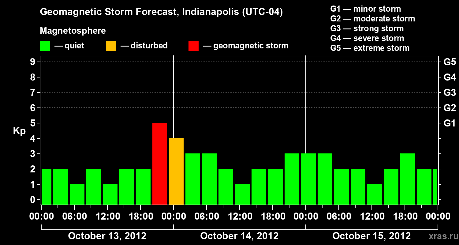 Geomagnetic storm forecast in Indianapolis for Oct 13, 2012