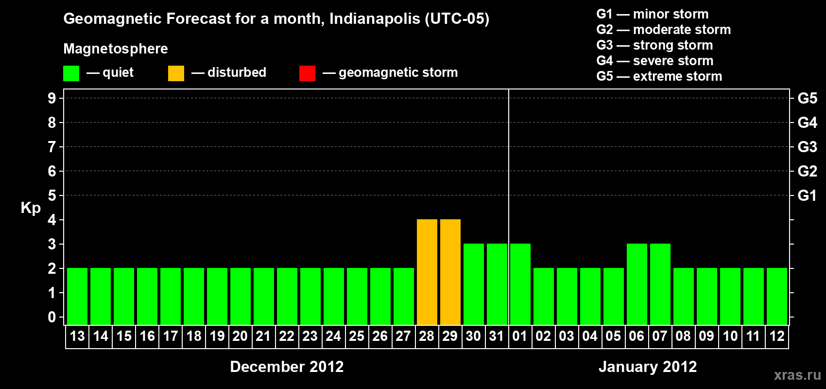 Geomagnetic storm forecast in Indianapolis for Dec 13, 2011