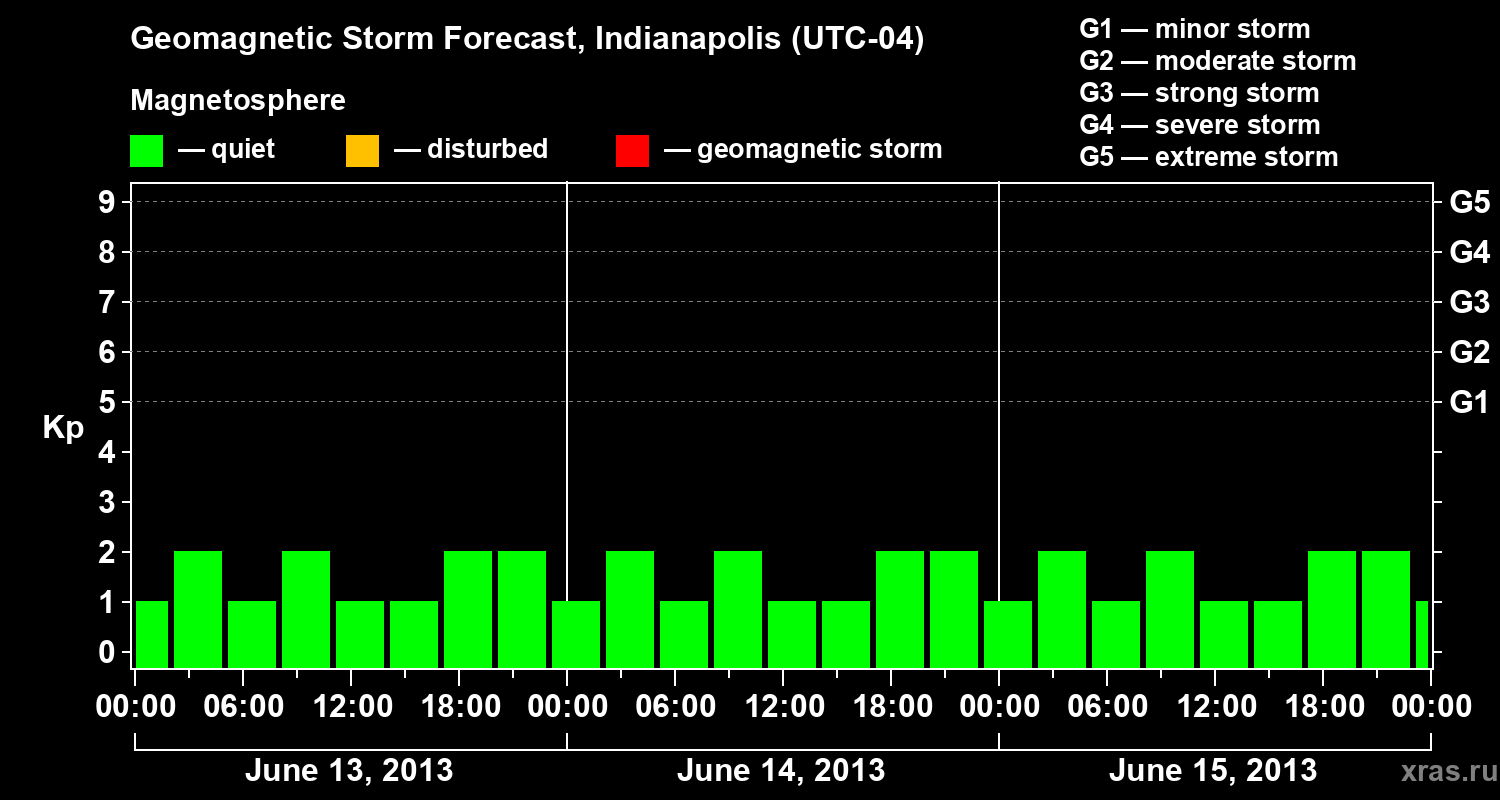 Geomagnetic storm forecast in Indianapolis for Jun 13, 2013
