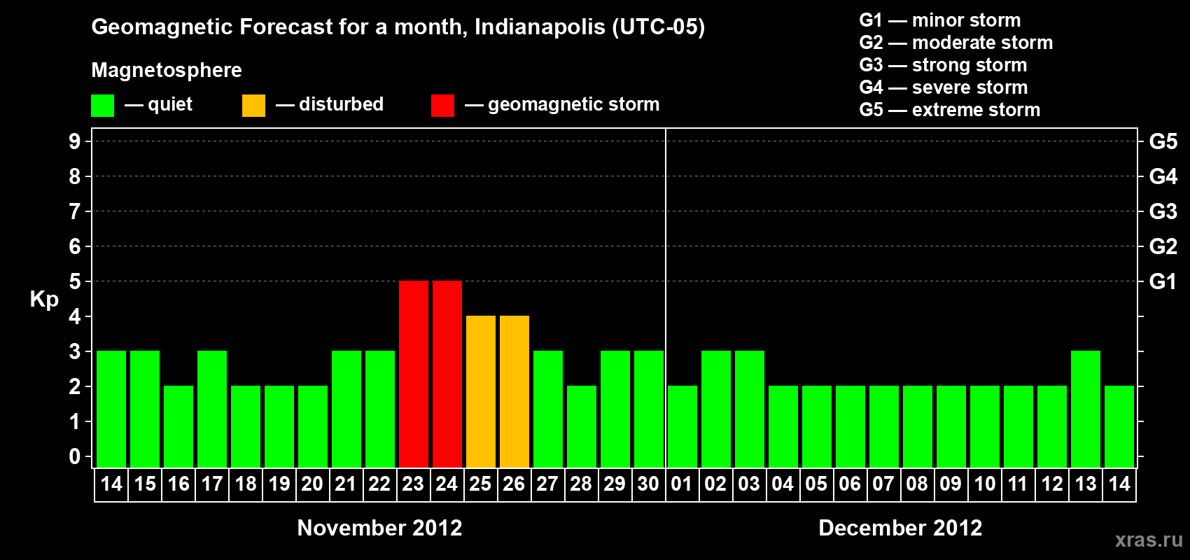 Geomagnetic storm forecast in Indianapolis for Nov 14, 2012