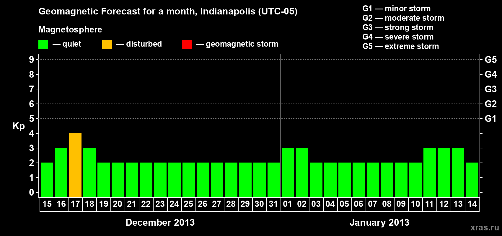 Geomagnetic storm forecast in Indianapolis for Dec 15, 2012