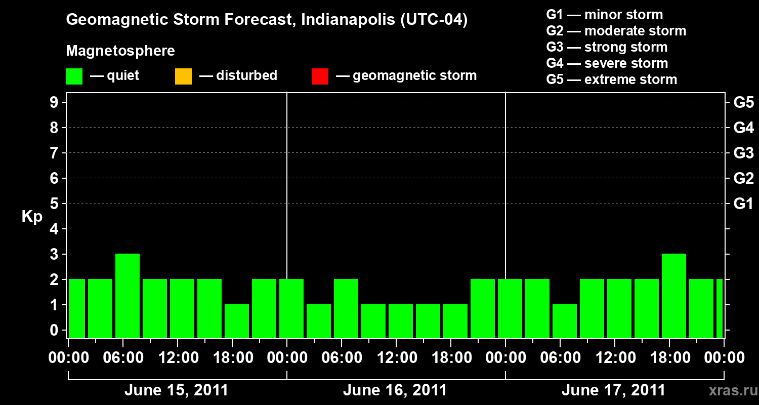 Geomagnetic storm forecast in Indianapolis for Jun 15, 2011