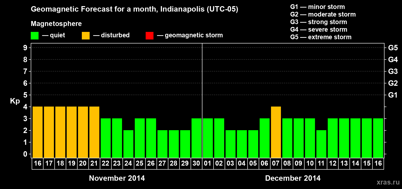 Geomagnetic storm forecast in Indianapolis for Nov 16, 2014